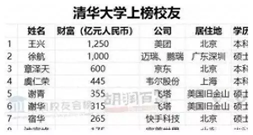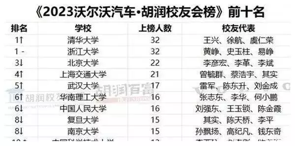 近日胡润研究院发布《胡润校友会榜》,在校友会榜中,清华大学稳居第一。而在清华大学上榜校友的名单中,章泽天以净资产600亿的身家在清华优秀校友中排行第三。