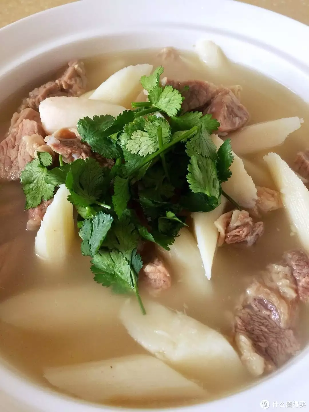5. 最后,将炖好的山药牛肉汤盛入碗中即可享用。