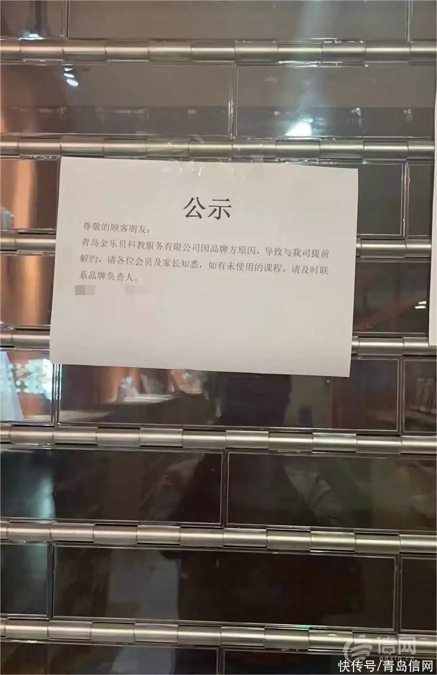 信网看到,这张公示上没有落款,只留下一个品牌负责人的联系方式,但从内容上看,应该是场地出租方贴出来的。随后,信网联系到金石国际广场的中南物业,工作人员称金贝乐关门不仅“闪”了家长,也坑了物业,“他们还欠着不少物业费,现在我们也在找不到他们的负责人。”