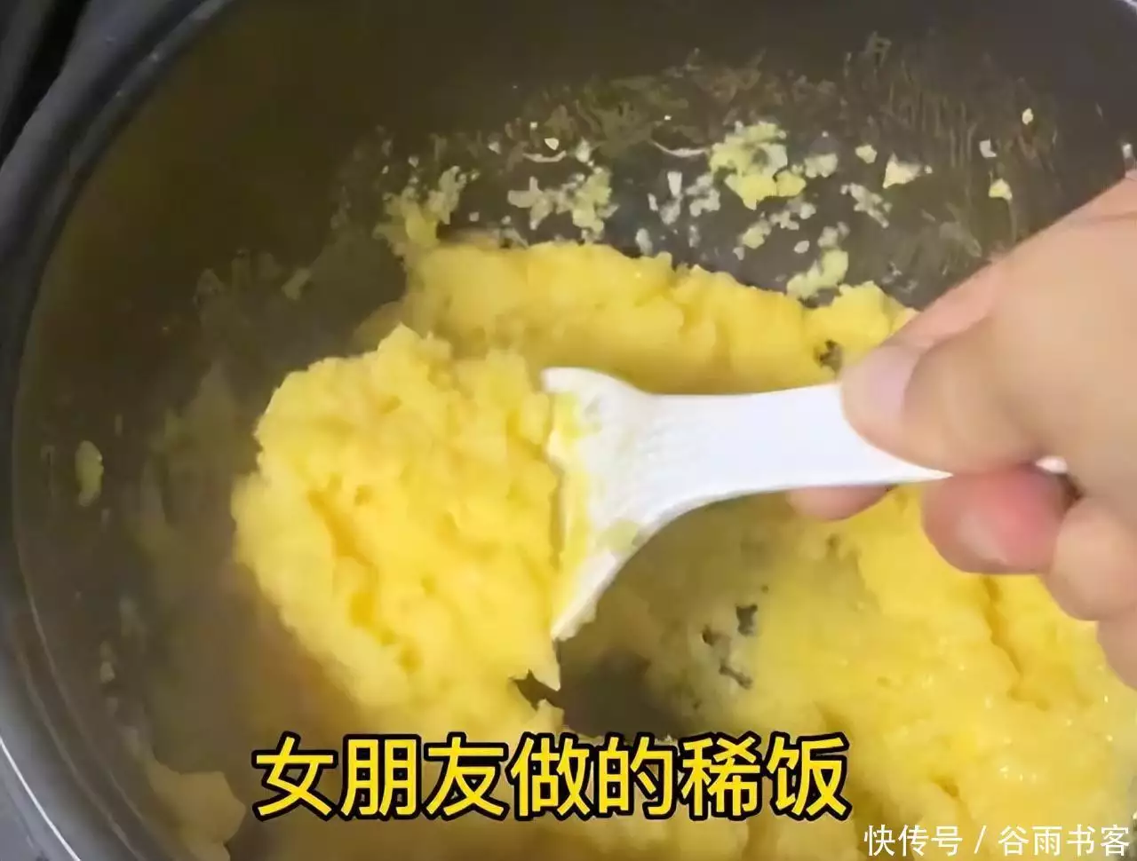 在山东青岛,有网友发布了一段让人哭笑不得的视频。原来一名女子给男朋友煮稀饭,结果因为操作不当不慎翻车。虽然说是稀饭,但是却格外的黏稠,当米饭吃应该都是没问题的。为了能够不浪费粮食,女子随后又把这锅粥做成了雪糕放在了冰箱里,打算让男朋友吃掉。