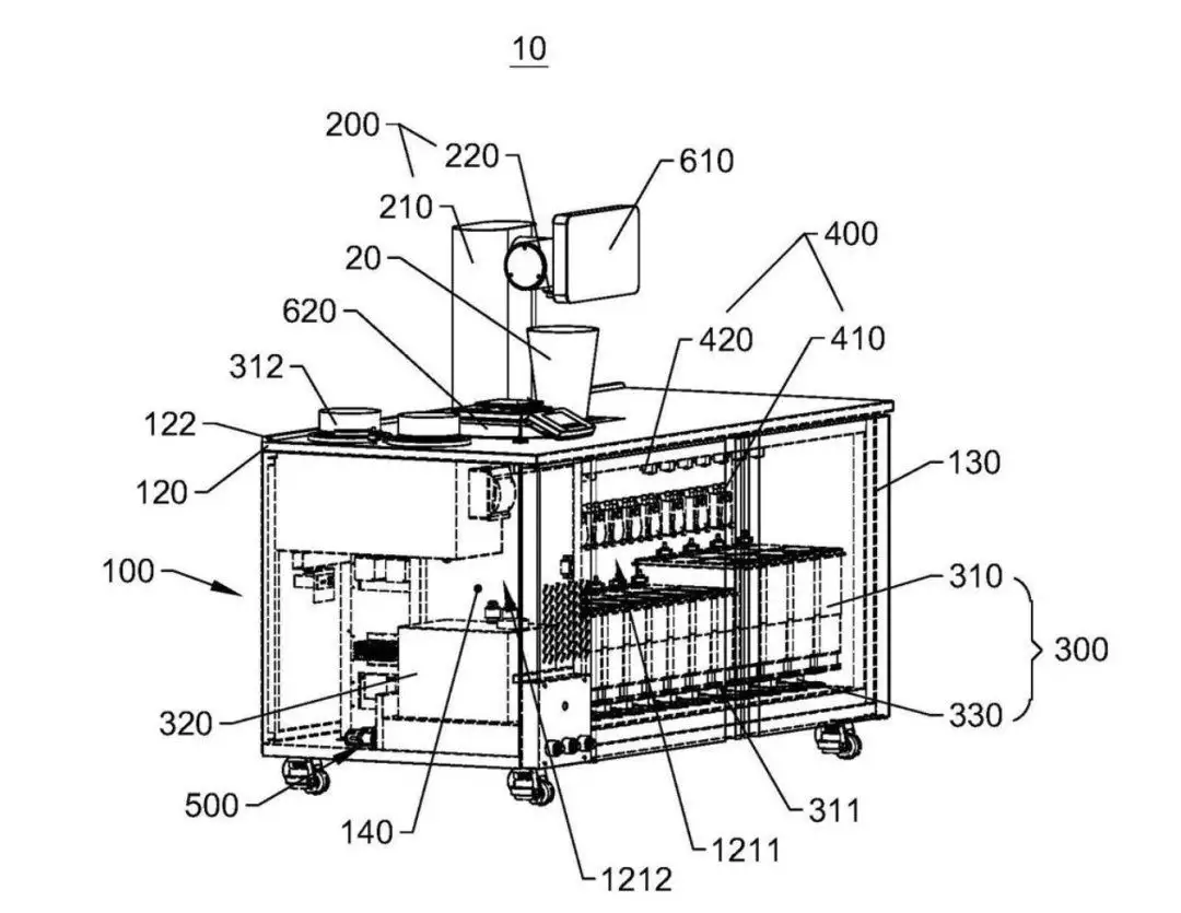 喜茶注册的饮料制备机专利最重要的新设备可能是饮料制备机。它降低了喜茶对娴熟店员的依赖,让加盟成为可能。加盟店接单后,店员会打印出一个二维码贴在杯身。机器扫描后就会从管道中自动倒出相应比例的茶汤、糖浆和果浆。加盟商不需要让店员背诵复杂配方,也降低了出错的可能性。喜茶总部得以保持自己频繁调整配方的产品迭代习惯。一位喜茶门店员工告诉我们,今年 2 月喜茶推出的新品水牛乳波波,上新当天调整了 5 次配方。通过制备机云端更新配方,门店得以快速适应调整。一位喜茶人士透露,目前使用了全套智能设备的 Lab 门店最快可以 10 秒出一杯茶。部分更换新设备的普通直营门店和开业一个月左右的加盟店也能做到平均 20-30 秒 / 杯,比之前大多数门店的速度快了一倍。在今年一月喜茶对加盟店开出的设备方案中,这些在门店试验过的设备以 15 万元的价格打包出售。过去,一家喜茶门店开业前,新员工都需要在老店实训至少 2-3 个月,今天这一进程有望被压缩到一个月,加盟店从选址、装修到人员培训最快 40-50 天完成。在加盟店面前,一切成本项都要重新评估。喜茶要求加盟商需要雇佣最低 1 名店长和 6 名店员,但加盟商可以自行决定人工成本。他们不一定和直营门店一样缴纳五险一金,员工时薪不低于当地最低工资标准即可。一位在深圳总部见识了这套设备的加盟商告诉我们,他判断只要门店每天营业额大于 6000 元,这套设备就值得买,有望为单店减少 2 名- 3 名员工。对于大多数中端品牌门店,这意味着每天卖出约 400 杯饮品,目前的主流茶饮品牌门店都能做到。今年 2 月,我们在第一批投入运营的盐城大丰加盟店观察到,店内 9 名员工在这套设备的帮助下平均 24 秒做出一杯茶,和北京、上海运营一年以上的直营店效率接近。04从直营到加盟,进入另一门生意开直营店是卖产品,而开加盟的本质把店卖给加盟商。只开直营店,喜茶可以长期投入,一切以提升产品体验,积累品牌为先。但加盟商更在意的主要是多长时间能赚回本、回报率是多少。喜茶需要向加盟商们证明,加盟这个品牌能挣钱,且回本速度不会弱于竞争对手。在过去两年,几家中端新茶饮品牌的回本周期通常在 10 - 14 个月,最长不超过 18 个月。今年 2 月,第一批通过面试的 30 多名加盟商们在深圳喜茶总部接受了两天的培训。一位做过多个品牌的加盟商觉得这次培训事无巨细地讲述了喜茶公司的方方面面,自己像是经历了一次入职培训。培训中,喜茶招商负责人李伟向加盟商们承诺,原材料价格低于同行,保证为加盟店提供 60% 以上的毛利率。喜茶会把自己所有的系统对加盟商全部开放,未来的目标是不分直营和加盟。目前加盟类型分三种:大区域合伙人,经营 30 间以上的大区域加盟商;小区域合伙人,经营 5 - 10 间门店;多店合伙人,经营 2-3 间门店。《晚点 LatePost》了解到,喜茶目前不招募大区域合伙人,而是优先寻找能一次开 5-10 间店的加盟商加入,再从中筛选出更适合的合作方在更大的区域,经营更多门店。小区域加盟商将有一年区位保护,在此期间其他加盟商不能在该区域开店。加盟商也需要完成对赌,承诺一年内开设规定的门店。以小区域合伙人开设 5 家门店为例, 合伙人需向喜茶缴纳 30 万元打包区域代理费。另花费 15 万元购买喜茶提供的智能设备、10 万元装修。算下来一家小区域合伙人最少需要投资 155 万元,平均每间店 31 万元,这不包括房租和原料采购费用。