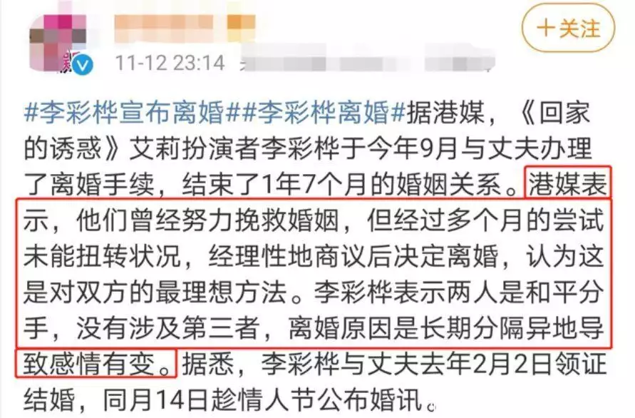 2018年,李彩桦和家境富足的男友猝不及防地步入婚姻,原本被认为嫁入豪门,但是婚后不到两年,她就宣布了离婚。