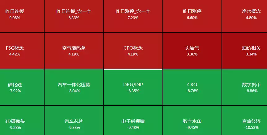 在概念类指数中,CPO概念、算力概念分别涨超4%、3%,油价相关、天然气、中字头、东数西算、工业母机、工程机械等题材较为活跃;数字水印、电子后视镜、汽车芯片、3D摄像头等题材跌超9%,数字货币、CRO、DRG/DIP、汽车一体化压铸等跌超8%,碳化硅、数据确权、增强现实、智慧政务、EDA概念等跌超7%,MLOps概念、MLCC、机器人概念、华为欧拉等题材跌幅靠前。