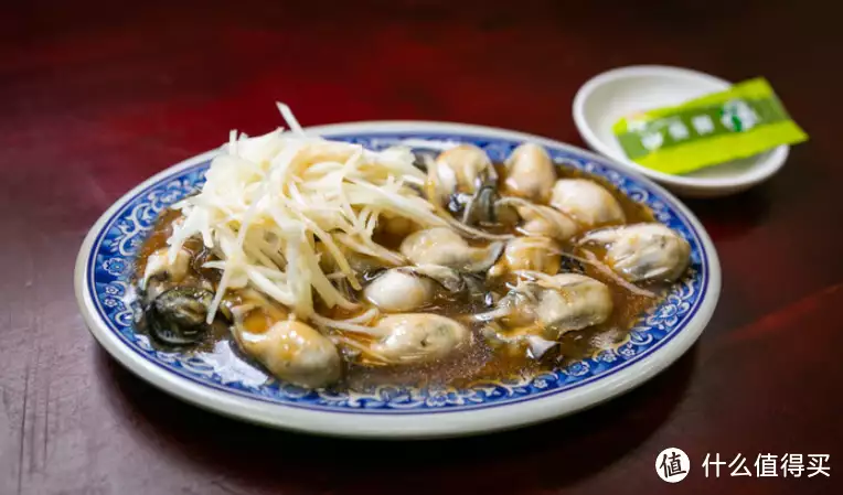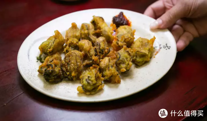 刚刚的鲜蚵好评不断,所以我们又加点了一份炸蚵仔,店家搭配的是少许提味的胡椒粉以及点缀在角落的花麻酱,一样先来颗原味的! 真正的外脆内柔啊,而且非常的新鲜,连一点点的腥味都没有喔。