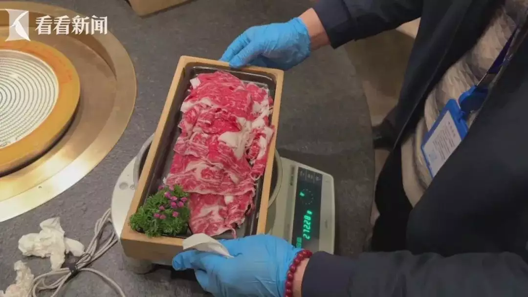150克的肥牛执法人员检测完却只有140克而更让人吃惊的是单价最贵的一份和牛标称200克实际差了足足22克!根据菜单上的价格算也就是32元