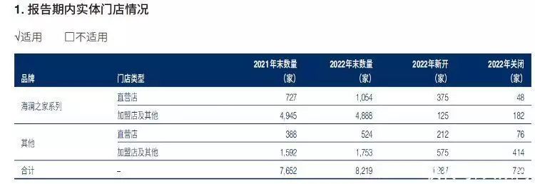 周立宸在15日的业绩会上透露,2022年,海澜之家的直营店新开375家,关闭48家,年末数量达1054家;加盟店及其他新开125家,关闭182家,年末达4888家。