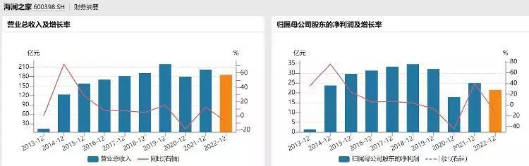 此后三年,海澜之家的业绩有起有落,2020年至2022年的营收同比增速分别为-18.26%、12.41%与-8.06%;净利润同比增速分别为-44.42%、39.6%与-13.49%。过去一年,海澜之家的营收约为185.62亿元,净利润约为21.55亿元。