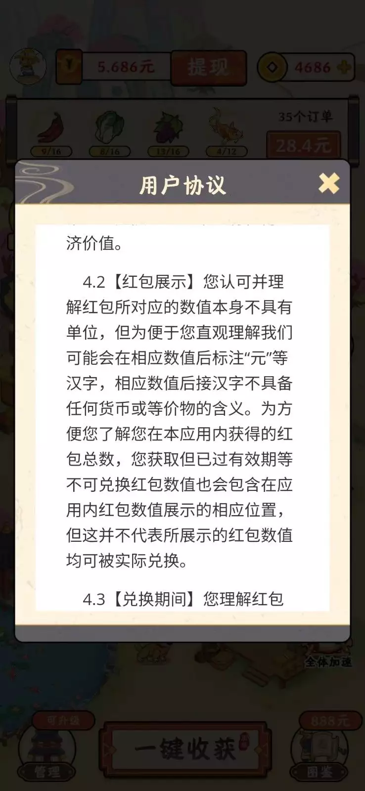 “您认可并理解的红包所对应的数值本身不具有单位,但为便于您直接理解我们可能会在相应数值后标注‘元’等汉字,相应数值后接汉字不具备任何货币或等价物的意义。”在进入游戏仔细观看用户协议后,记者发现了这一条。