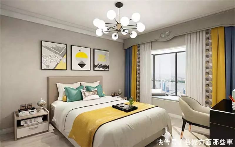 次卧室在配色上,同样点缀了暖心的黄色,作为孩子的房间,不仅有足够的储物功能,飘窗的设计,更给次卧增添了很多的艺术色彩,尽情享受休闲时光,视觉上感觉活泼自然。