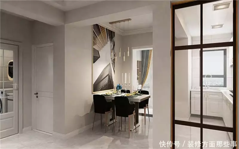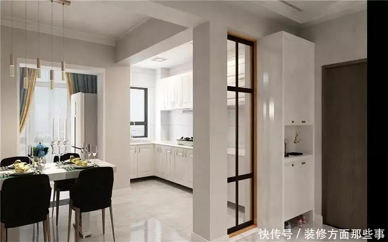 由于玄关缺乏采光效果,显得比较暗,给人不太舒服的感觉,而且玄关紧邻厨房,又想做个开放式厨房的设计,所以在后期设计中,把玄关柜旁边的墙体进行拆改,安装玻璃窗,这样一来,厨房的亮光就能照射到玄关,增加玄关的采光效果。
