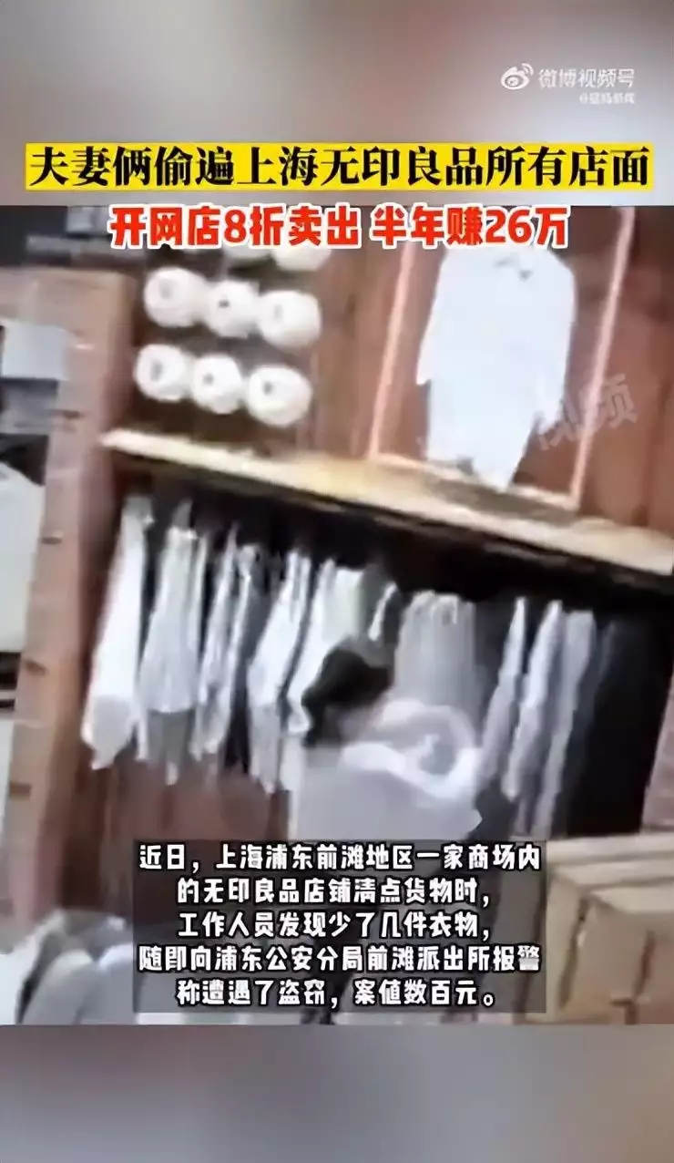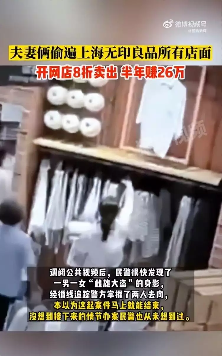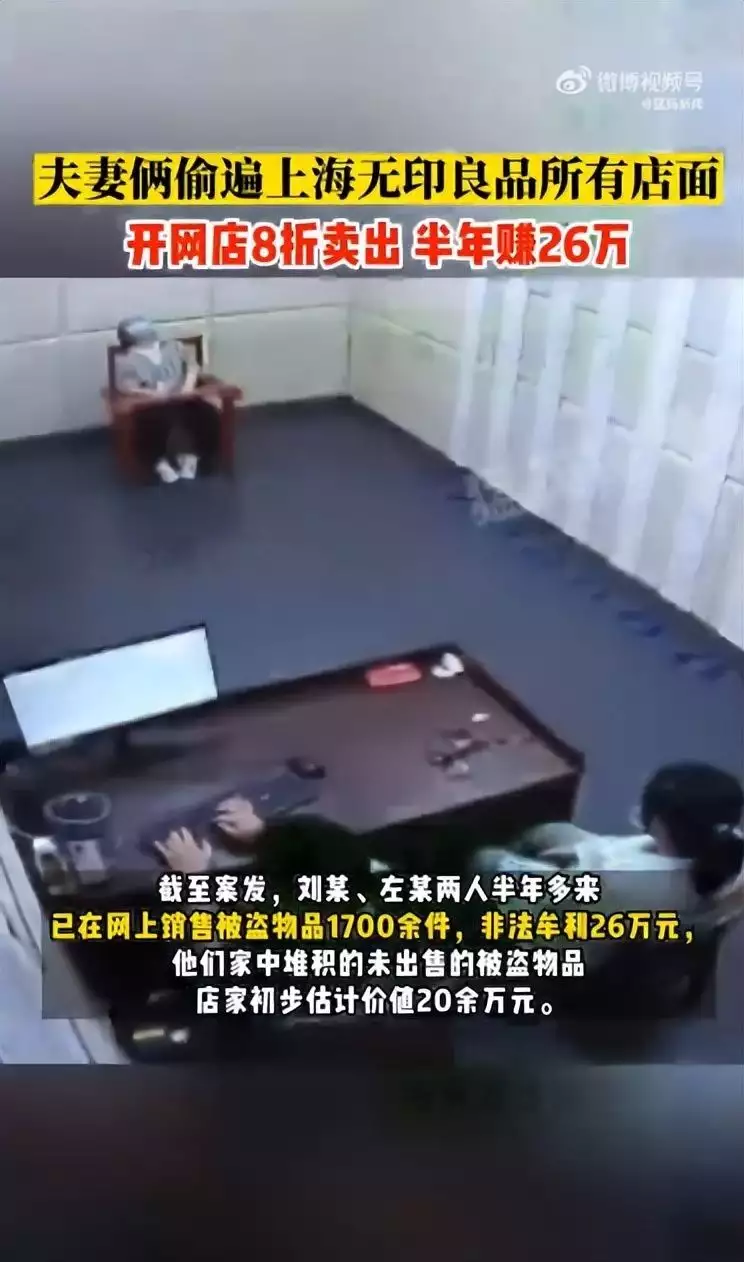 一再得手,两人的贪欲被激发了。由于无印良品经营的商品品类繁多,衣食住行一应俱全,“雌雄大盗”走遍了无印良品在上海的各个店铺,从几件到数十件再到数百件,他们的“进货式”盗窃日渐疯狂。最后突发奇想开起了网店自称“品牌代理”,专门以八折价格出售无印良品的商品,只要顾客有所要求,他们便会趁着周末节假日逛店、挑选、盗窃、打包、快递,网店生意兴隆,直至被民警抓获。