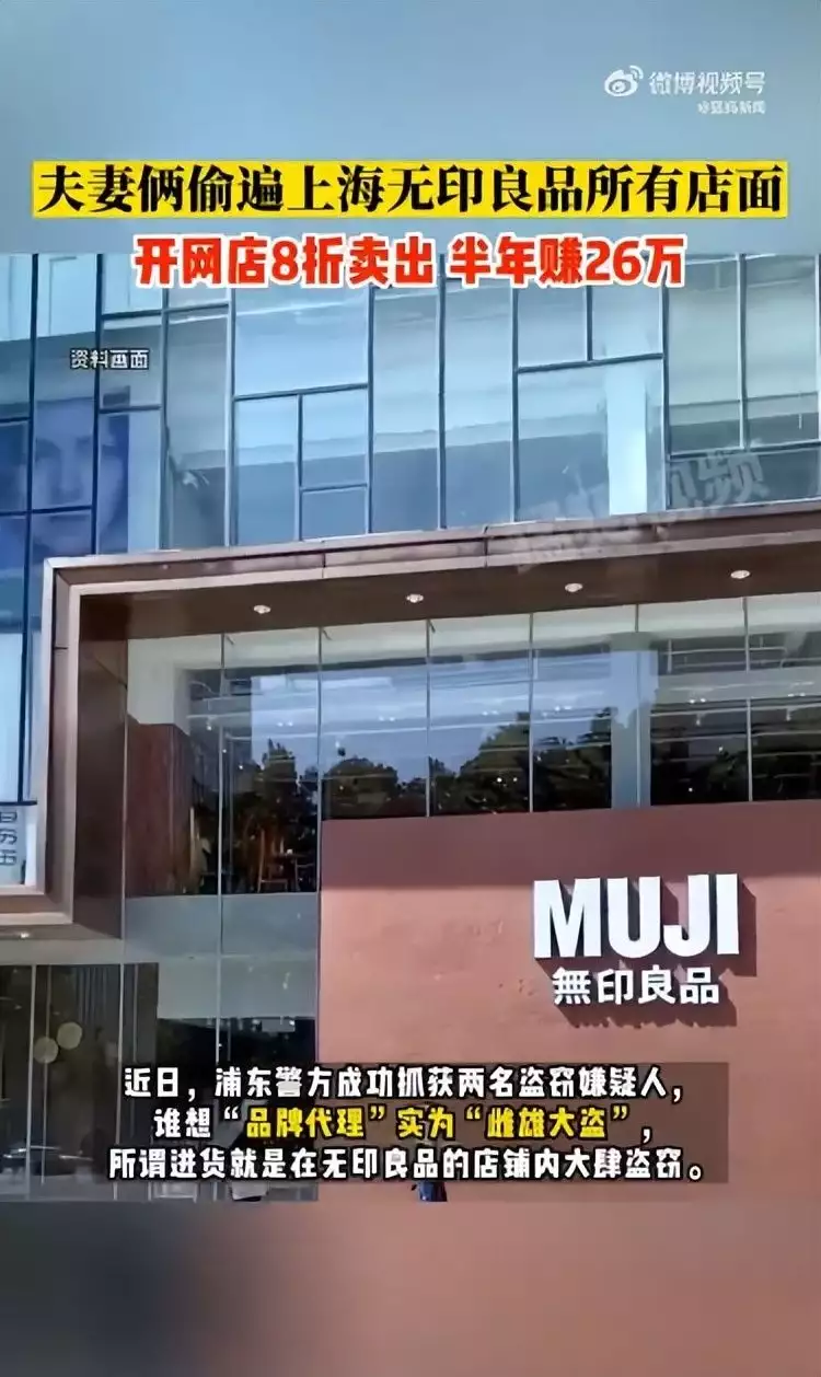 9月7日,据猛犸新闻报道,网购平台上一家所谓“品牌代理”的店铺,以八折出售无印良品商品,低廉的价格和有求必应的进货服务吸引了大量顾客。谁曾想“品牌代理”实为雌雄大盗,所谓进货就是在无印良品店铺内盗窃。