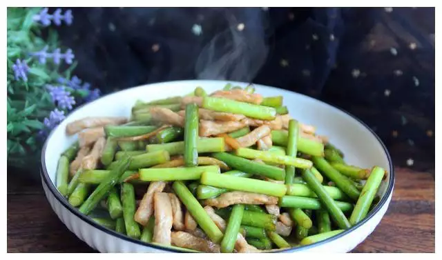 所需材料:蒜薹半斤、猪肉150克、油盐适量、姜2片、生抽1汤匙、红烧酱油少许、料酒半汤匙、