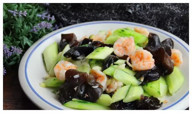 所需材料:大虾10几个、黄瓜2根、水发木耳1把、油盐适量、香油半汤匙、葱1段、姜2片、大蒜2瓣、鸡精1茶匙、白胡椒粉半茶匙、料酒半汤匙、水淀粉适量、