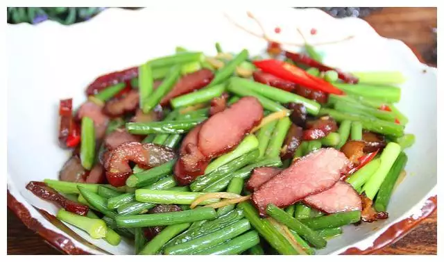 所需材料:腊肉半斤、蒜苔半斤、小米辣3个、油盐适量、姜2片、