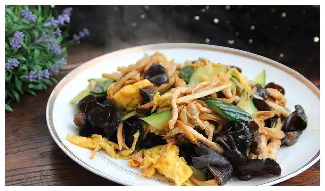 所需材料:鸡蛋2个、干黑木耳1小把、干黄花菜1小把、猪里脊肉100克、黄瓜半根、油盐适量、香油1汤匙、葱1段、姜2片、酱油1汤匙、鸡精少许、淀粉半汤匙、料酒半汤匙、
