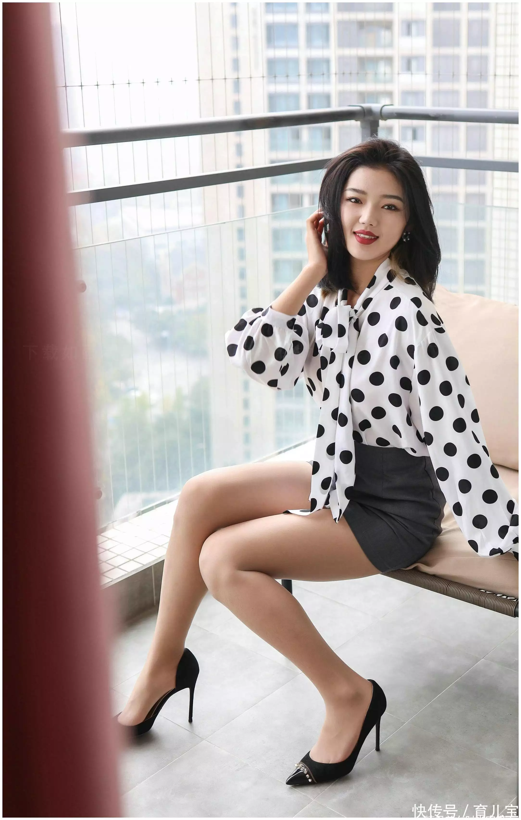 首先,我们来说说这位女士所穿的衣服。看起来就是一件纯棉质地的白衬衣,上面有黑色波点点缀着。这款衬衣给人的感觉既简单又时尚,既不会过于花哨,又有着自己独特的味道。
