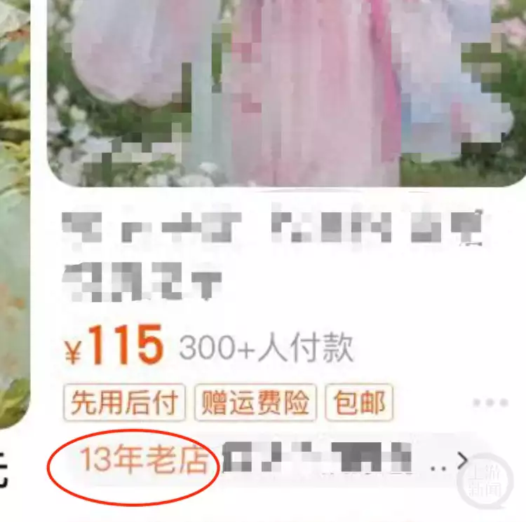 在电商平台上,很多消费者会根据店铺的经营时间和信誉来选择购买商品,而“X年老店”的标识往往被认为是店铺信誉和经营时间的象征。上游新闻记者发现,所谓“13年老店”其实是新店并非个案。记者进入“锦上堇瑟原创汉服”服装网店看到,网店首页标注“13年好店”,其工商登记信息显示,市场主体成立于2018年9月。