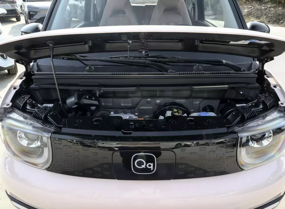 我们先来看看QQ冰淇淋,老实说,它的外形还是不错的,圆润的前脸惹人怜爱,圆形大灯组也具备着软萌的气质,车头中央“Qq”的徽标也起到了不错的点缀作用,使得整车给人青春洋溢的观感,只是设计语言比较单调,缺乏了些许精致感。