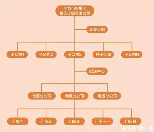 翻阅沙县小吃集团官方微信公众号的推文介绍,一方面,从底层的组织架构着手,以集团为总公司,在各地采取参股的方式组建子公司,用现代化连锁经营的管理方式发展;另一方面,细微处调整,形象上统一店面包装,产品上委托第三方标准化生产及物运,人力上统一培训。