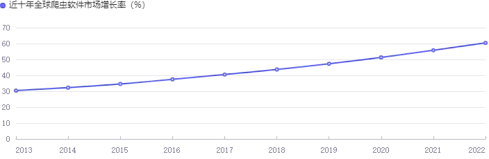 以下的图表展示了全球爬虫软件在近十年的市场增长率变化: