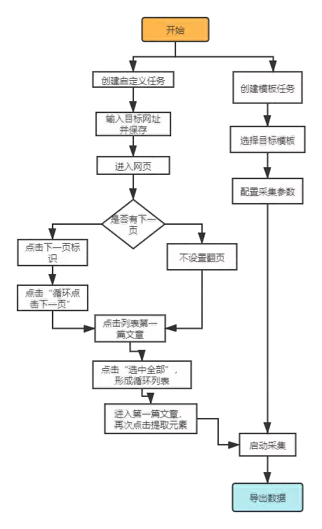 因此,本调研梳理了八爪鱼自定义采集的业务流程图。