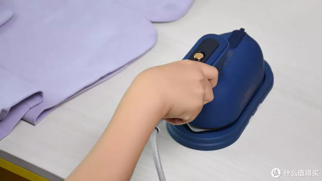 这款电熨斗有三种配色,我选的是舒乐氏产品代表性的蓝色。外壳采用亲肤质感处理,不仅在视觉上很显质感,把手部分握持起来舒适度也很不错。