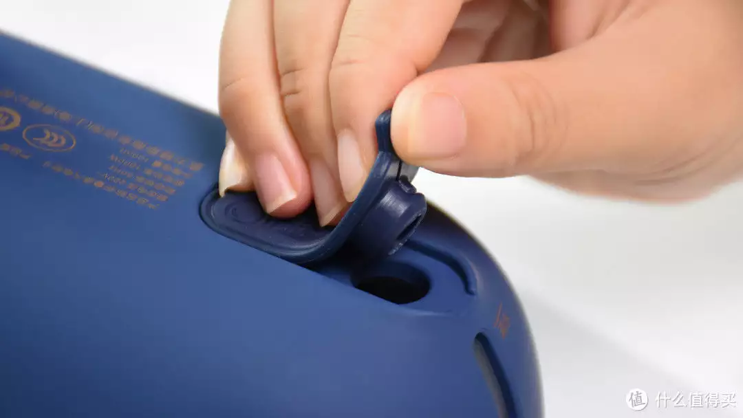 水箱内置在机身当中,容量是100ml,打开橡胶塞就可以加水。从旁边的透明视窗可以看到水位线,切记不可超过“满水”刻度线。如果担心加水太多容易溢出的话,可以用附送的水杯加水,有90ml和100ml两档刻度,方便把控水量。