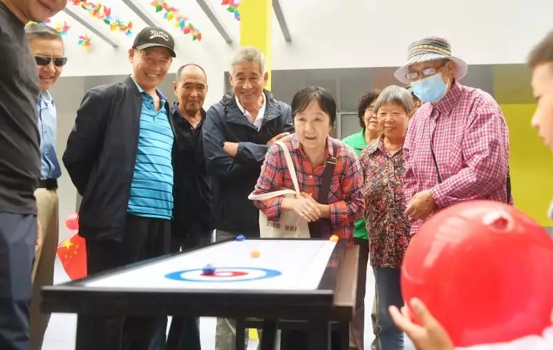 走进“邻聚庭院”,由南至北建有耆硕乐享院、怡情悦性场、福履同心庭。耆硕乐享院营造处一个休闲小院。“院”里近350平方米的中央厨房,构建起“中央厨房+社区助餐服务网点+配餐/送餐入户”的多层次社区养老助餐服务体系,精准化服务满足地区28个社区3.2万余名老年人的用餐需求。此外,还有社区卫生服务站、养老驿站、互动笑脸墙等为老人们提供多样的养老生活,打造“一老一小”服务空间。