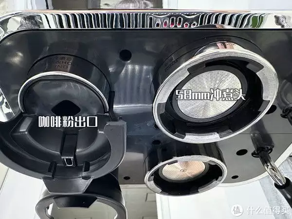 控制面板下方就是操作区域了,从左到右依次是磨豆器、冲煮头、蒸汽棒,从磨豆、萃取、打奶泡可一气呵成,使用起来特别方便。