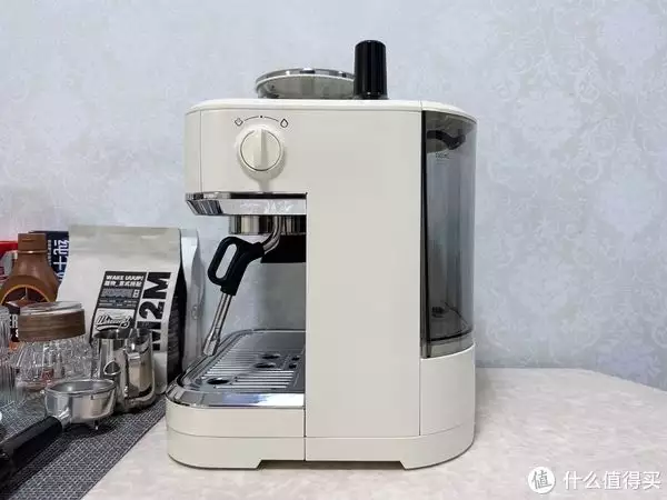 趁着618优惠,剁手了这台宜盾普咖啡机。咖啡机外观时尚且不失复古感,采用奶白配色,整机小巧精致,并无传统意式咖啡机的笨重感。