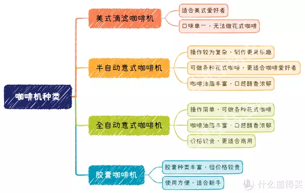入手咖啡机前,我也做了不少功课。先和大家分享下常见的家用咖啡机种类,以及它们的优缺点。