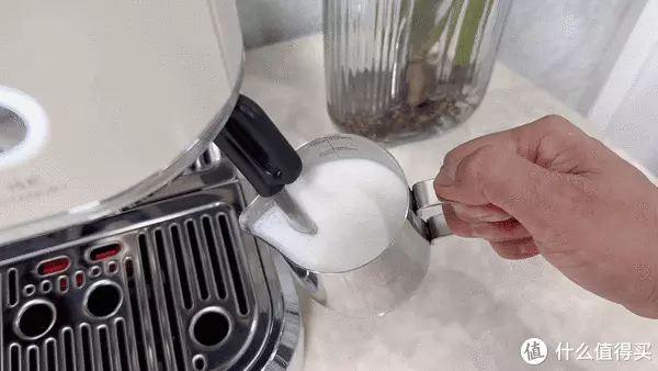 除了研磨一体外,宜盾普咖啡机还集成了打奶泡功能,配置了可360旋转的蒸汽棒,15Bar压力的蒸汽强劲有力,打出来的奶泡均匀细腻,这给拉花创造了有利条件。