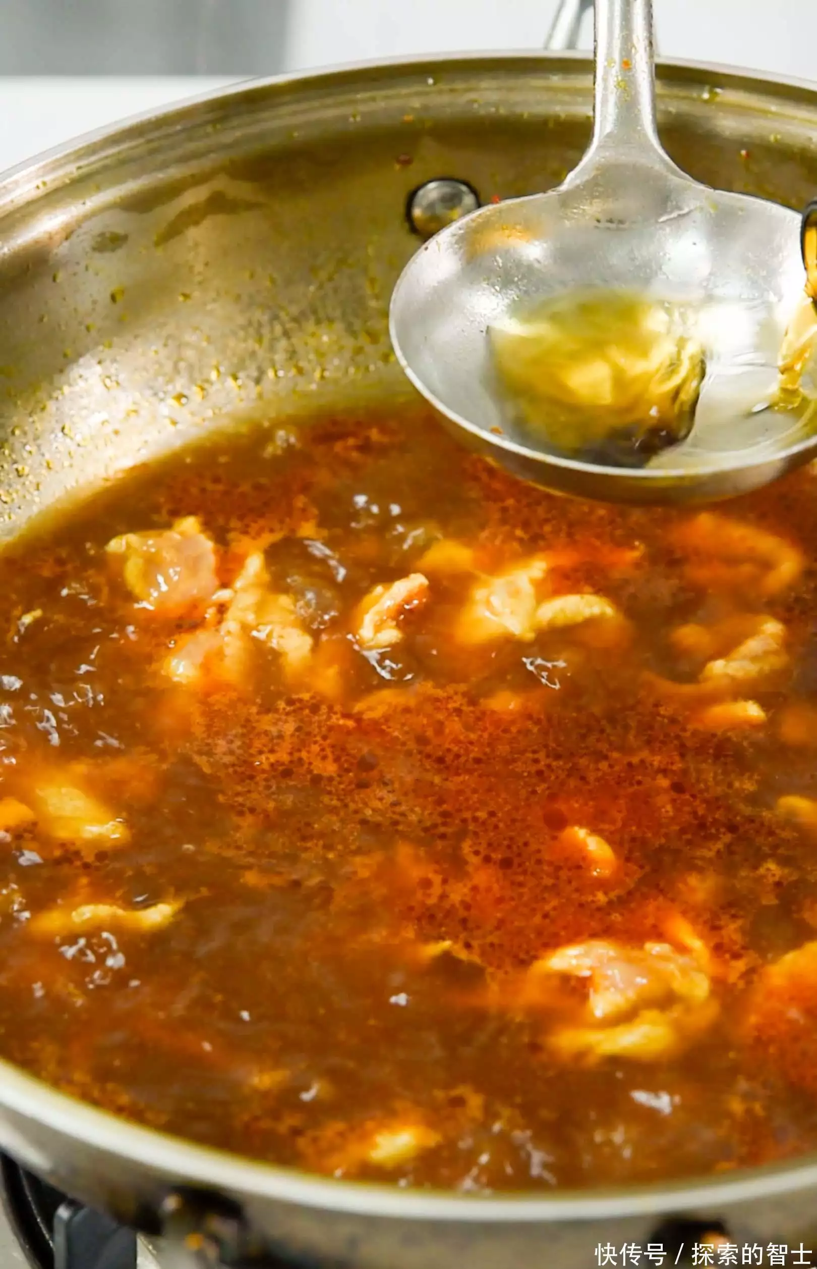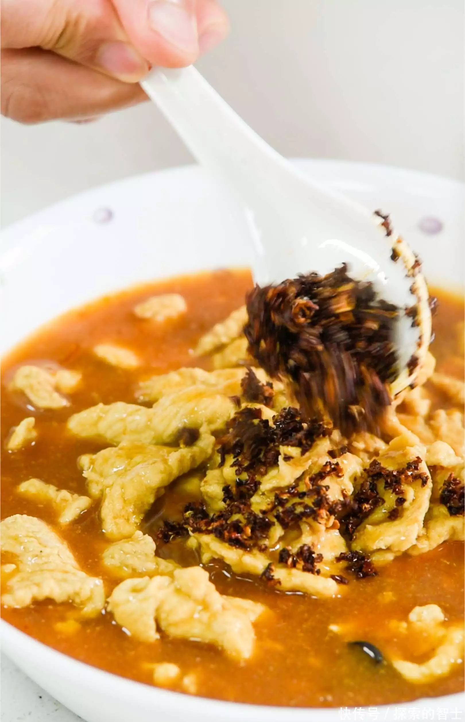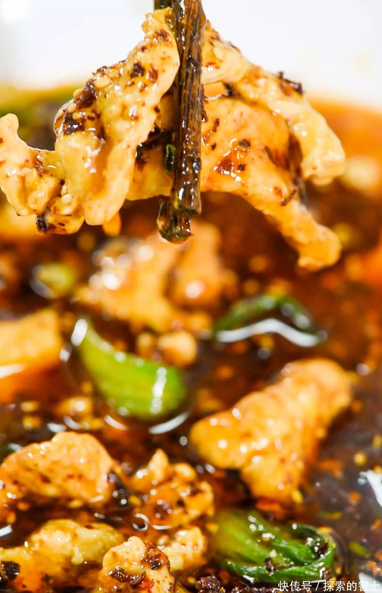 3 有的人认为肉片煮制完成放入菜碗中,已经这道菜完成了,其实不然,其中最为关键的是要加入辣椒,并且能用红油激发出辣椒和芝麻的香味,这样这道菜的香味会更加浓郁,极大程度地刺激了食客的食欲。