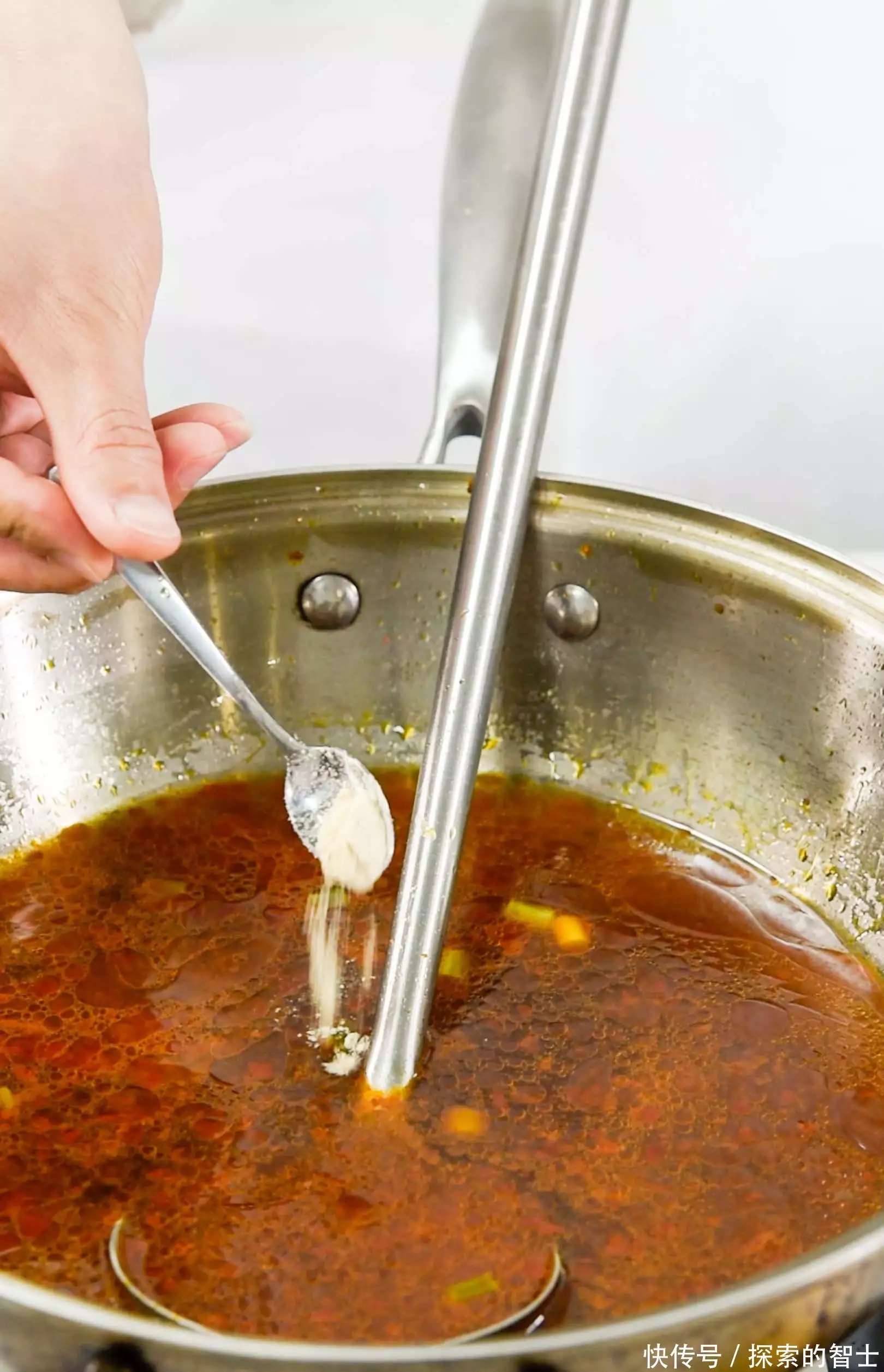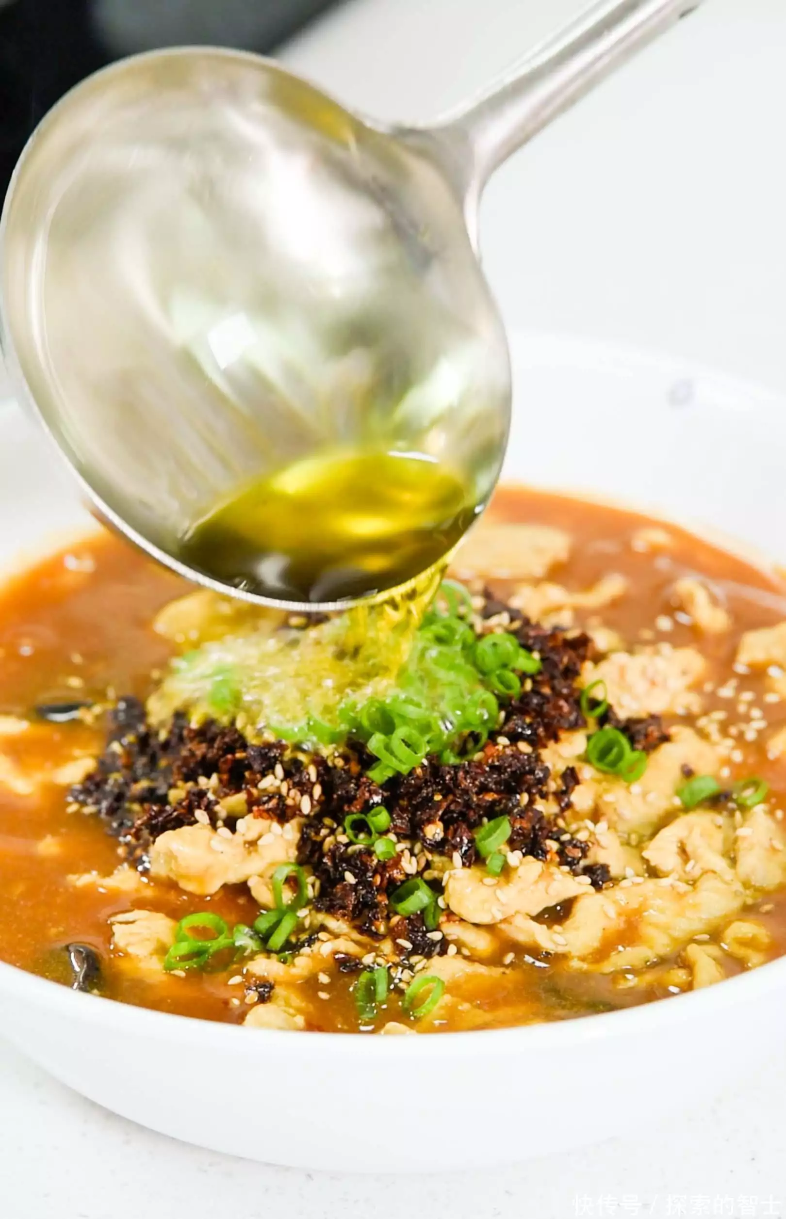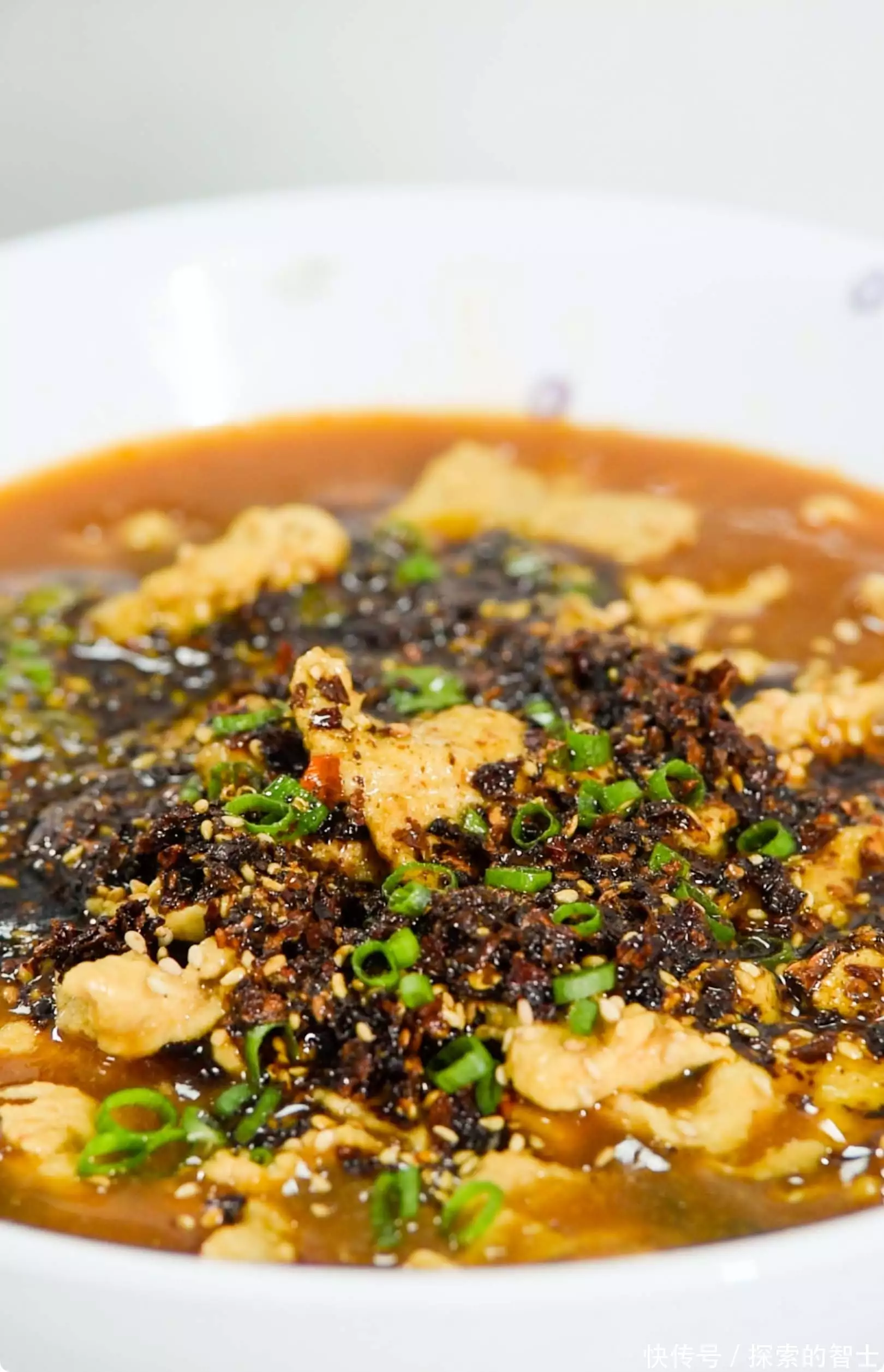 3 有的人认为肉片煮制完成放入菜碗中,已经这道菜完成了,其实不然,其中最为关键的是要加入辣椒,并且能用红油激发出辣椒和芝麻的香味,这样这道菜的香味会更加浓郁,极大程度地刺激了食客的食欲。