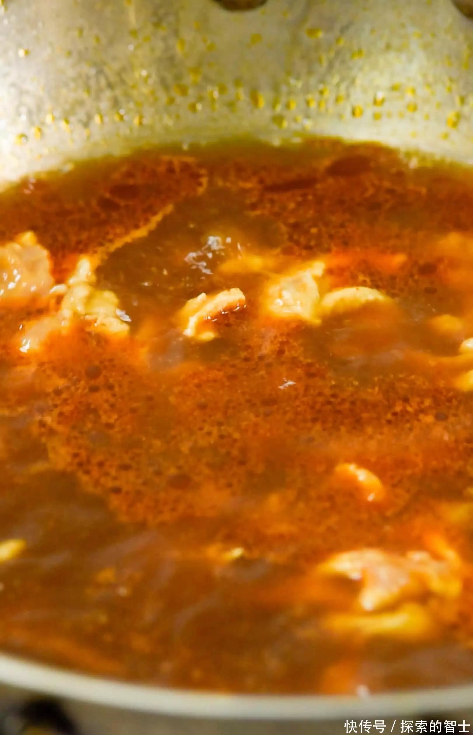 爆香后再炒出红油后,再放入生抽、老抽、味精、胡椒粉、白糖、盐,进行调色调味。