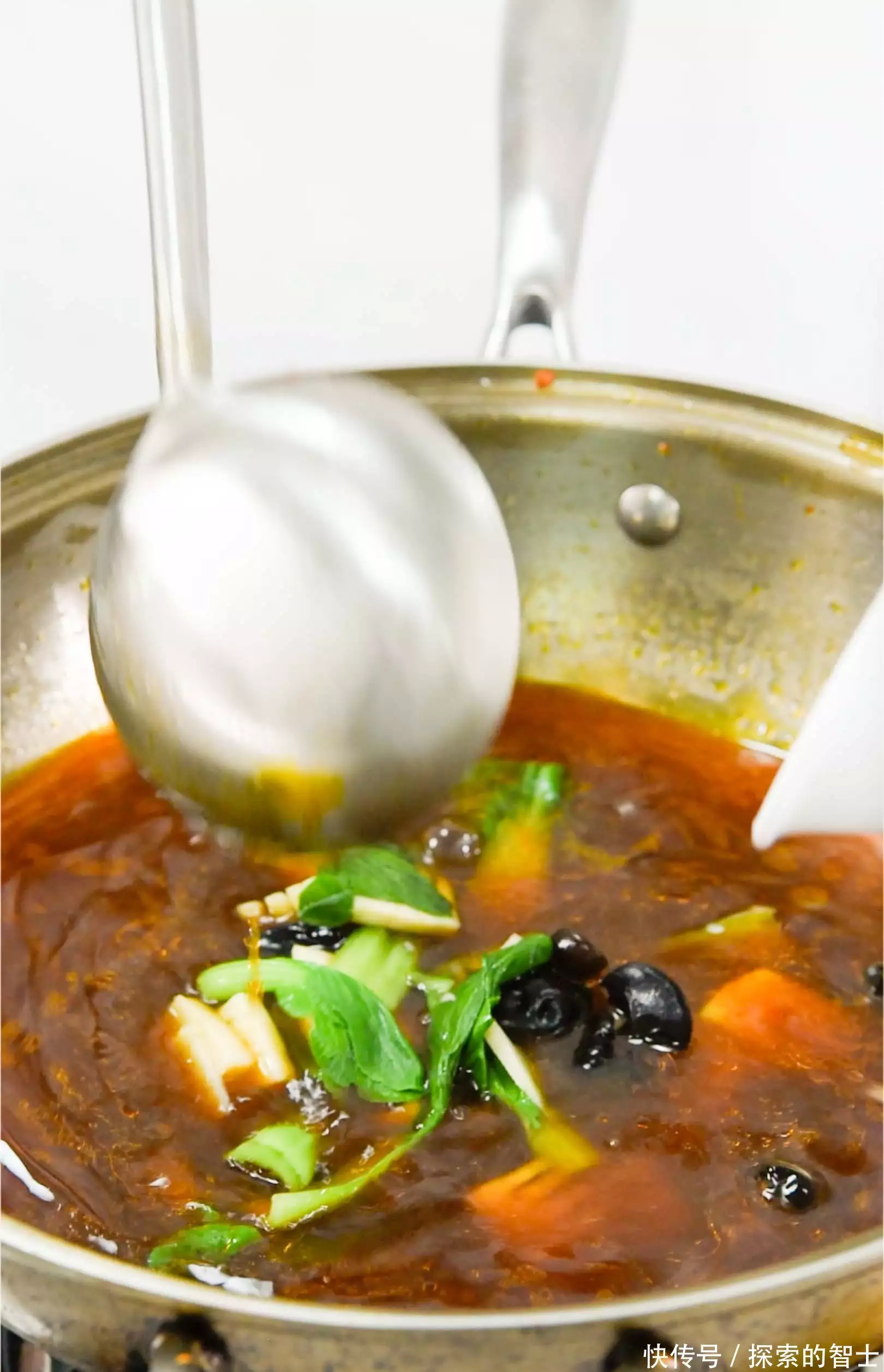 锅里面加入油,待油温达到6成热时,分别加入葱、蒜、姜小火炒香!