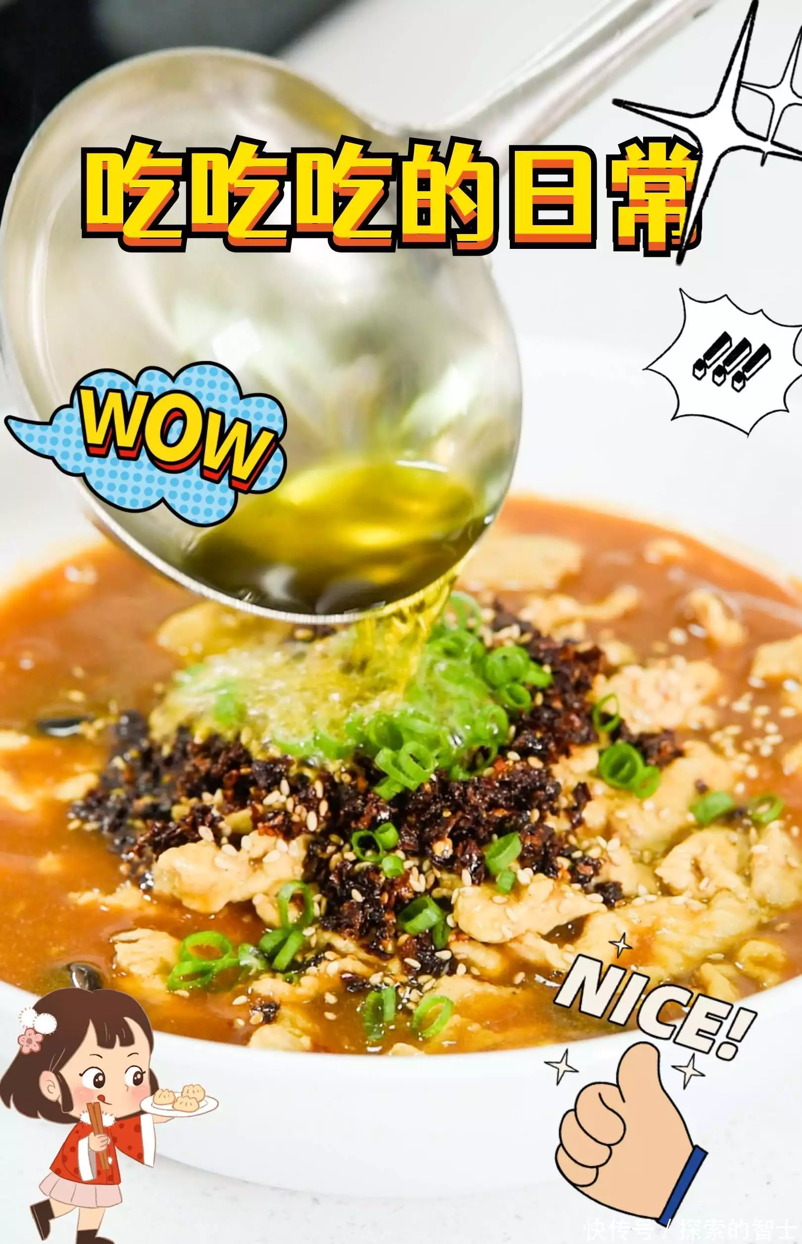 并在上面浇一勺烧至六成熟的热油,让辣椒迅速出香。