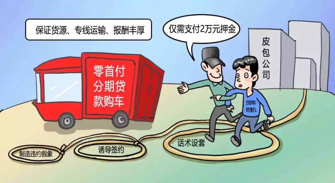 “我看公司挺正规的,这个经理也很专业,最关键的是,这个工资待遇算是很高的了,所以我立即就签了合同。”小范回忆说。签约后,根据公司要求,小范先交纳了一大笔押金。原来,想要赚这份“高薪”,首先要根据签约年限交给公司一笔1万元至2万元不等的押金。由于小范没有自己的货车,张经理便要求他交纳2万元的押金,随后帮他联系4S店零首付分期贷款购买车辆,并承诺小范“如果以后不再跑物流,随时可以把车子过户到公司名下,不再还贷”。