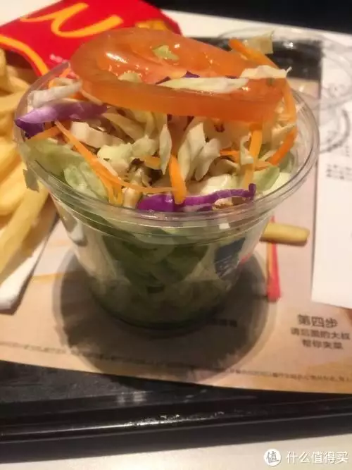 第三,是麦乐沙拉。这道食物类似于蔬菜沙拉,但是等你拿到手,你会发现它被装在一个小杯子里面,还有一个别致的名字叫做摇一摇沙拉。这让人感到非常惊讶,谁能告诉我要怎么摇才能吃?因此,这道食物也成为了黑暗料理之一。