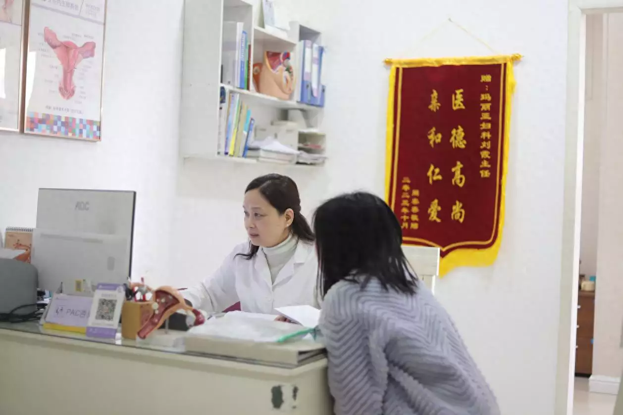 一女性在长沙百佳玛丽亚妇产医院进行产后42天检查。