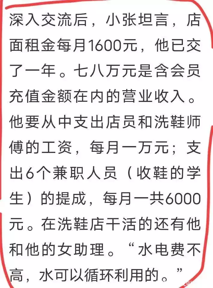 要知道,现在这市场行情,换在广东少珠三角如深圳,广州,东莞等一二线城市,很多小中小型加工厂达到这种利润水平都不是易事,但你一家小小的洗鞋店就实现了。