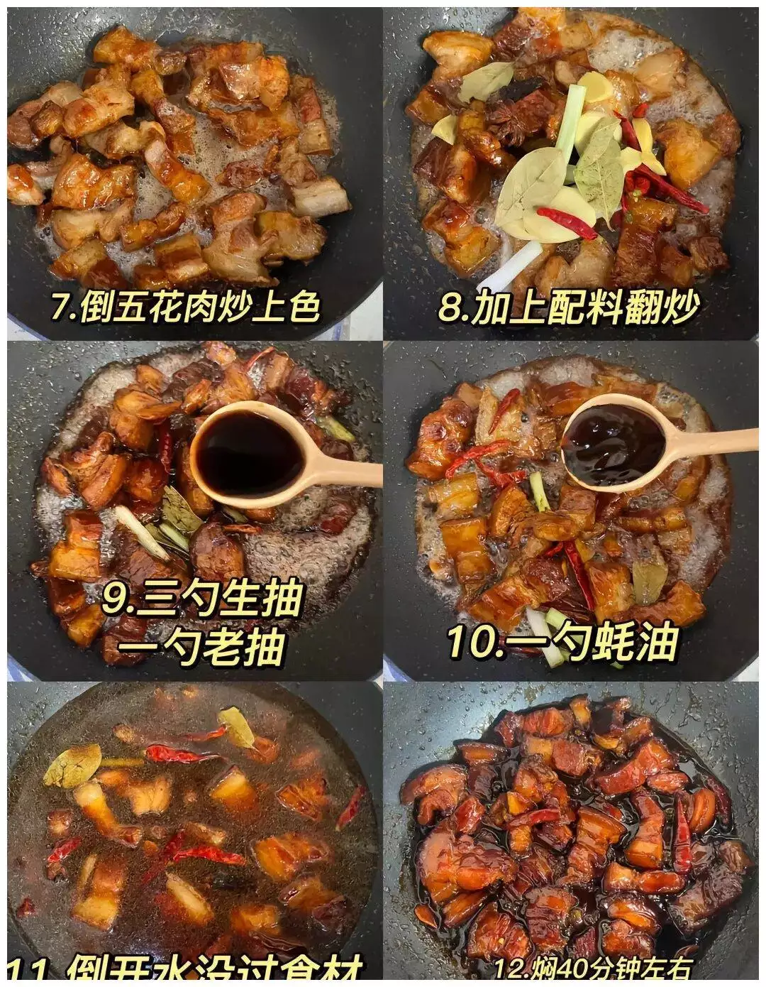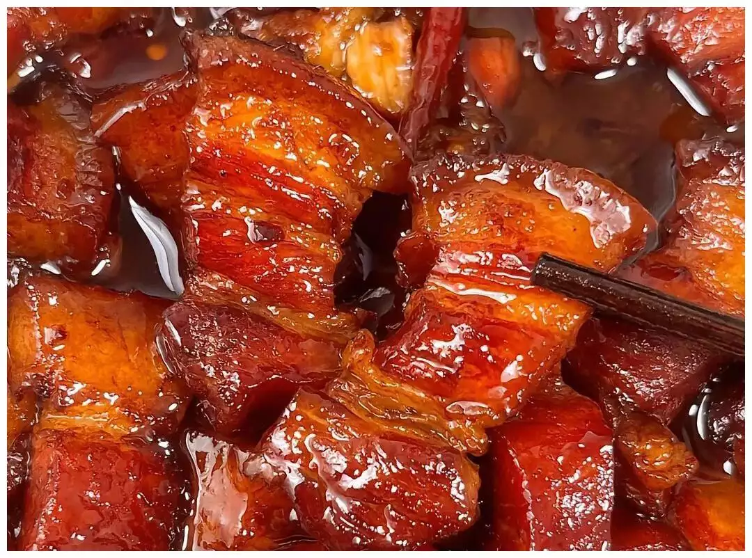 炖煮过程中要留意锅中的水量,避免烧干;随着时间的推移,你会看到那红亮的汤汁逐渐变得浓郁,而五花肉也在慢慢地变得更加软糯。