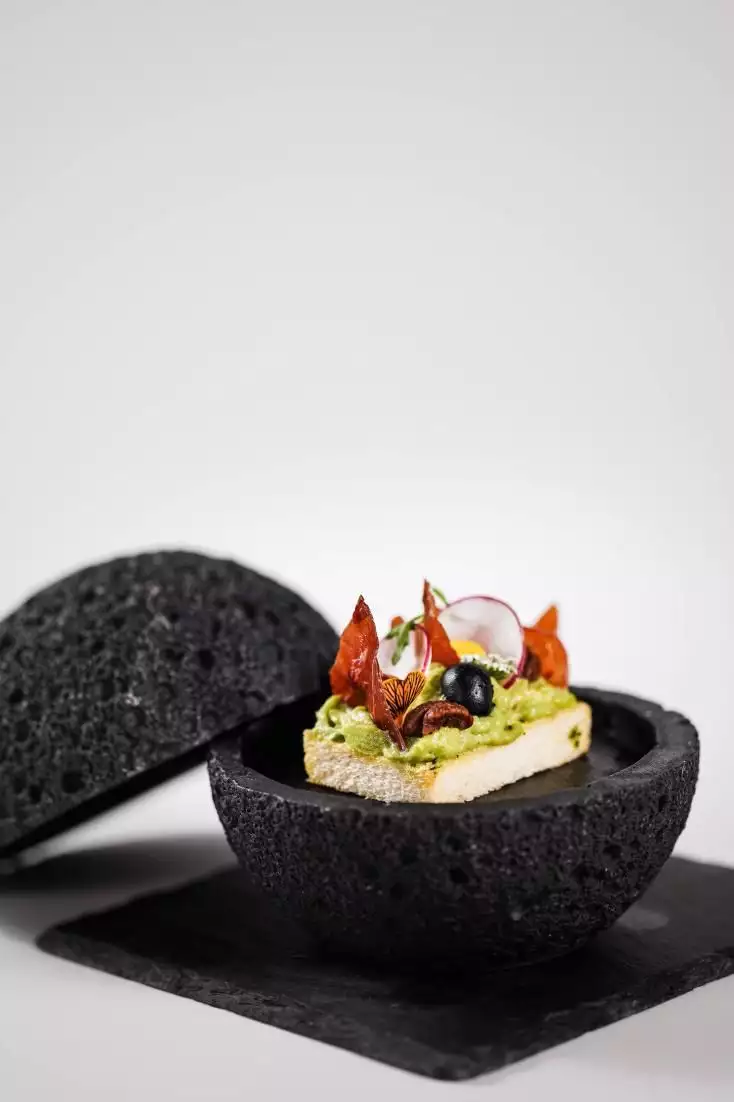 和木出品团队将烤制的5J火腿与新鲜蔬菜和香脆坚果搭配在一起,再加上用黄油和香草烤制的面包作为底层,呈现出丰富多彩的口味组合。这种搭配让人享受到火腿的咸香、蔬菜的清爽以及坚果的香脆,而面包的黄油和香草的香气则为整个口味提供了完美的衬托。无论是咸味、清爽还是香脆,每一口都有不同的味觉享受。