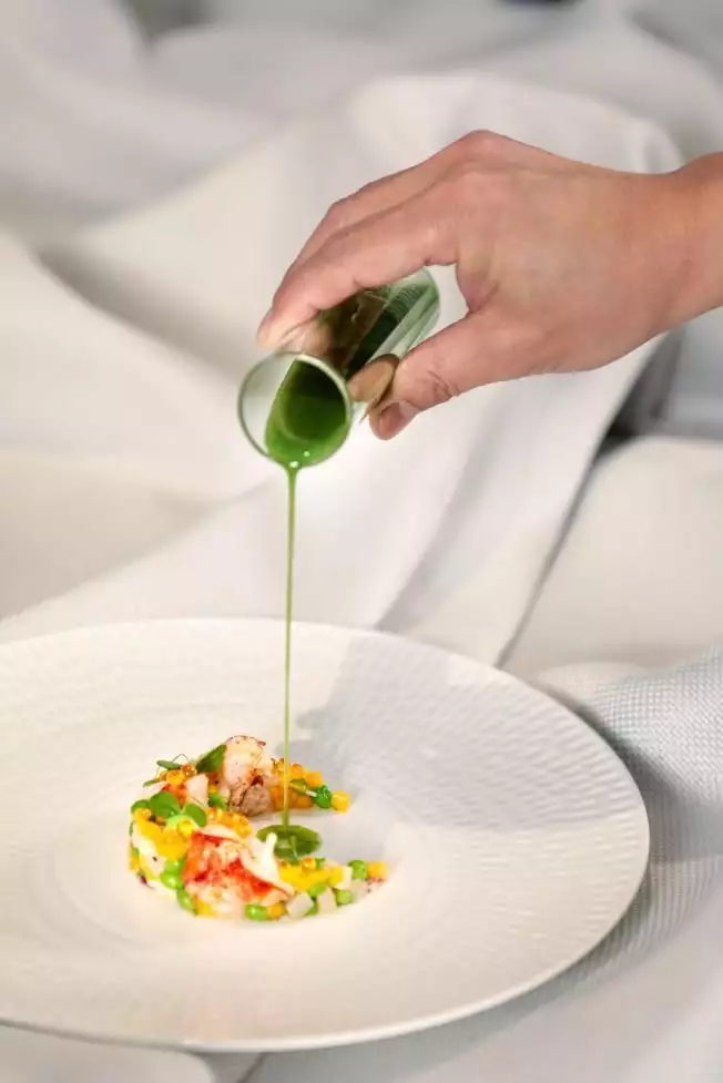 和木出品团队精心挑选了波士顿龙虾,并采用低温慢煮的烹饪手法,使得波士顿龙虾的口感保持脆嫩。搭配上嫩滑的南瓜和鲜美的带子,口感更加丰富。这道菜品不仅口感出众,而且造型美观,让人一见倾心。波士顿龙虾的鲜美与嫩南瓜的甜味相互融合,再加上鲜嫩的带子的点缀,每一口都是味觉享受。无论是视觉还是味觉,都能让人沉醉其中。