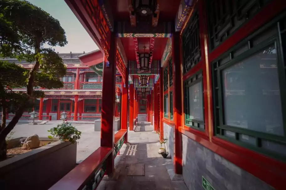 餐厅围绕着最具中国特色雅文化设计:曲、诗、书、论、酒、礼、琴。 餐厅坐落于东西两跨院,南北为三进院落,座北朝南方向的大型四合院建筑,是清朝北兵马司将军的王府,自古便是亲王、郡王、贝子贝勒及富豪商贾云集的风水宝地。